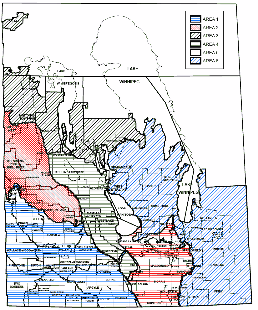 For insurance purposes, MASC divides Manitoba into 6 Forage Regions of similar forage production risk.